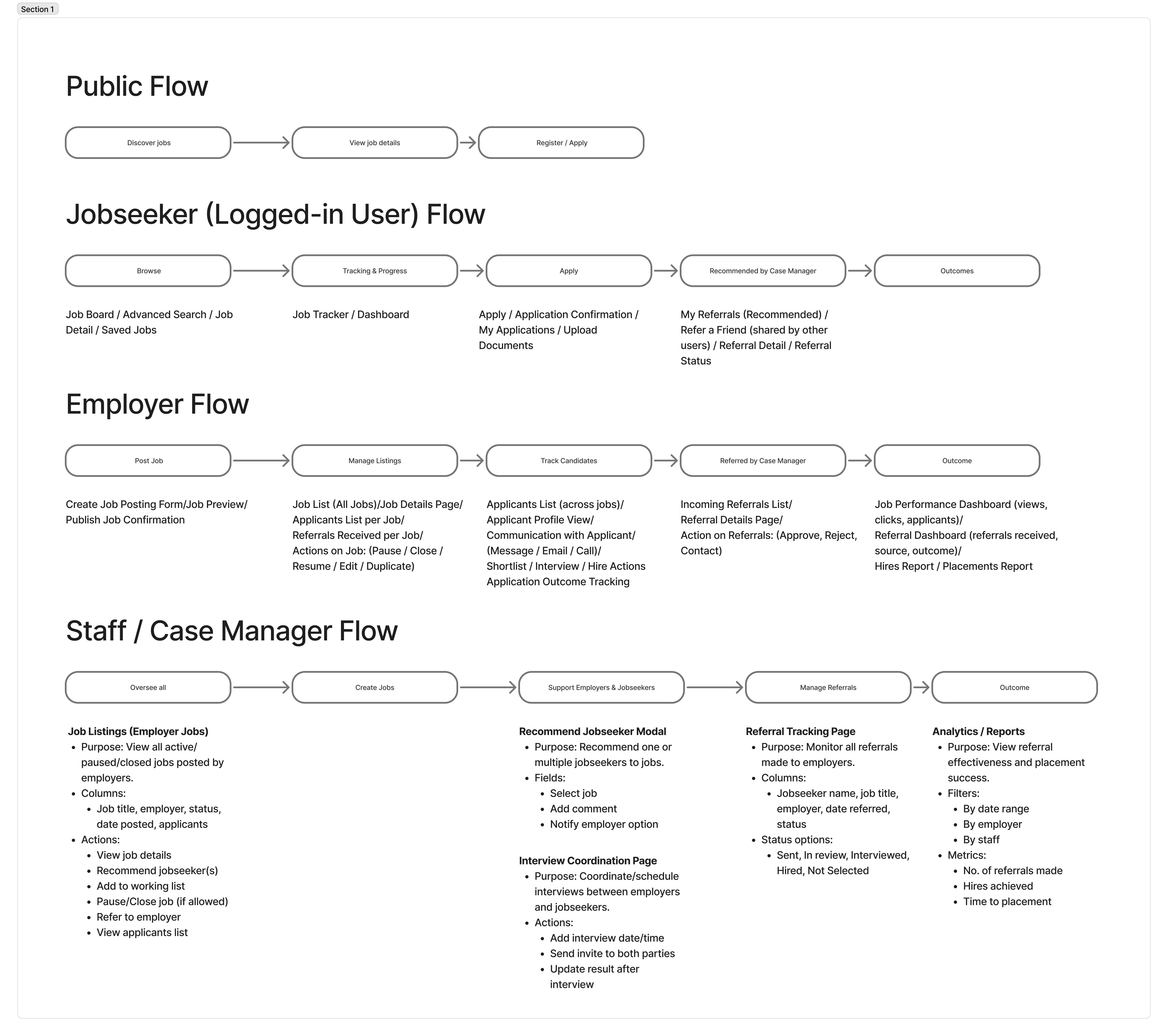 When I joined the project, the challenge was to reimagine how its Jobs module could truly empower users — by reducing dependency, streamlining workflows, and building trust across three very different groups: job seekers, case managers, and employers.